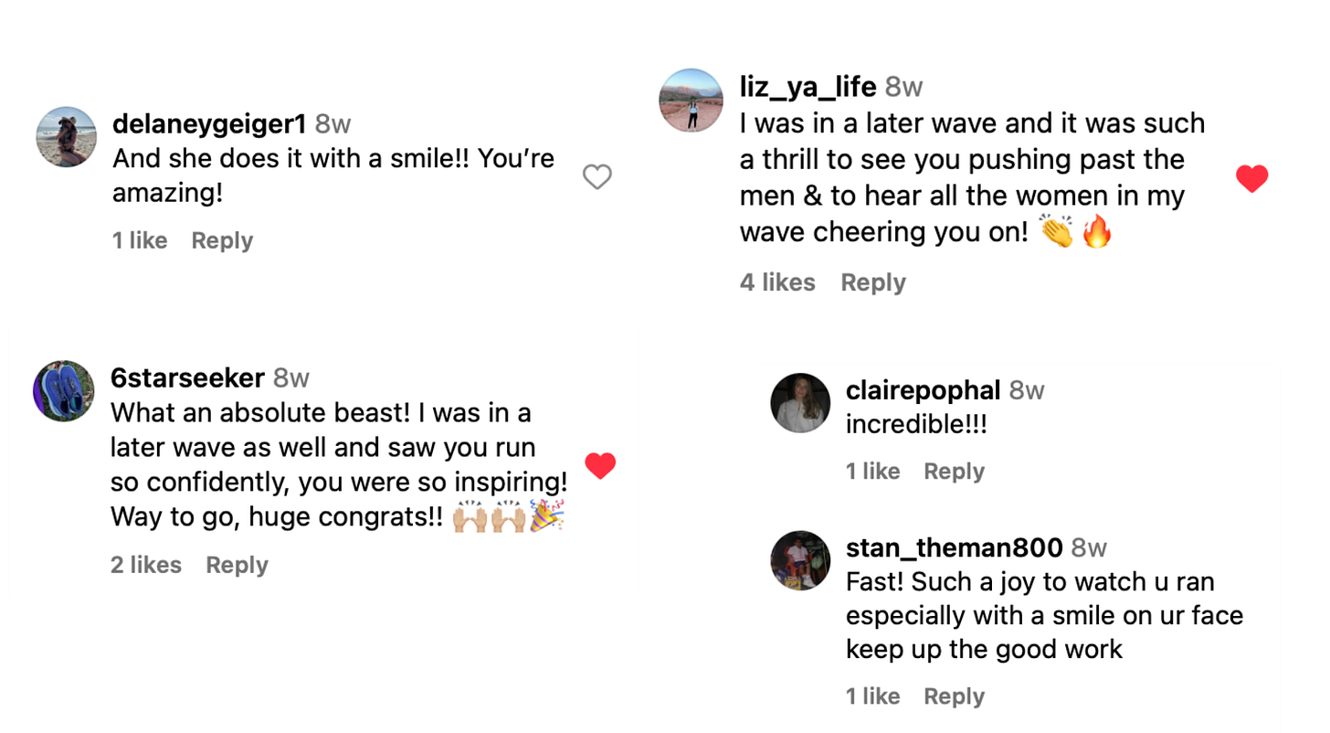 After placing first in a number of local races this year, she was invited to compete in the elite women’s category at the New York City Marathon. And incredibly, she didn’t just run with the world’s best, Felicia came in first among New York women, 8th among American women, 14th overall among women, and also qualified for the 2028 Olympic Marathon Trials with a time of 2:35:17.